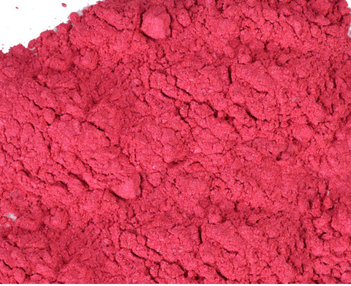 Raspberry Red Mica Powder is a shimmering scarlet red powder that is safe for coloring a wide range of cosmetics. In clear soap the mica creates a vibrant red color with a slight dark pinkish hue. The powder reminds us of the color of farm fresh juicy raspberries seen at a summer farmers' market.